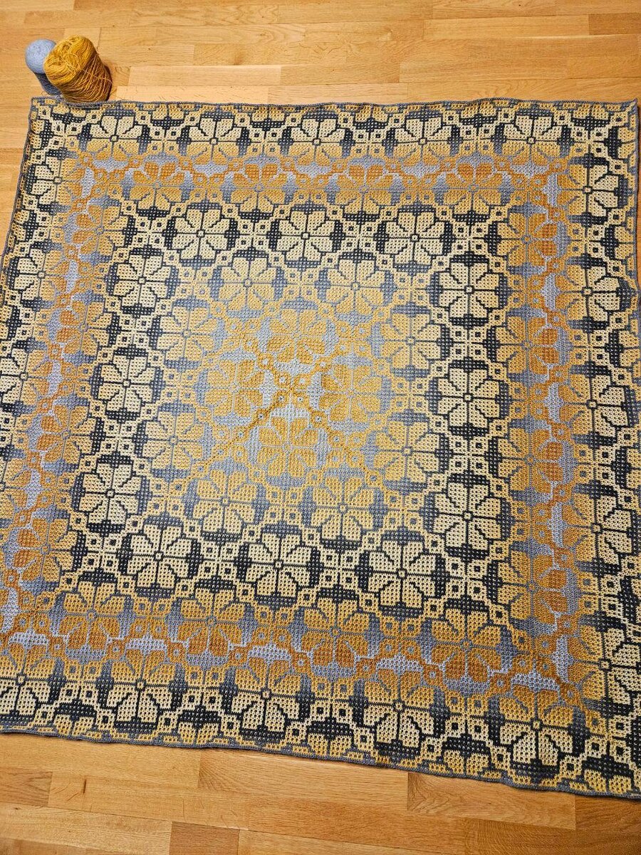 Сияющие цветы. Новости наших чатов Ольга из чата «Цветок из центра» играет переливами цаета с помощью пряжи с длинным градиентом. Такой эффект отлично применяется в центровой мозаике, где узор расходится постепенно. А если еще вязать из двух градиентных мотков сразу, то основной рисунок начинает будто парить над фоном. Ольга: «Чем ближе к финалу, тем сложнее вяжется. Во-первых, непросто поворачивать довольно большой уже плед. Во-вторых, он так уютненько лежит на коленях, что под ним пригреваешься и засыпаешь😂». Ольге желаем сил и терпения! Чат и схема здесь: https://t.me/+aUTyxxnnE-M5ZDhi