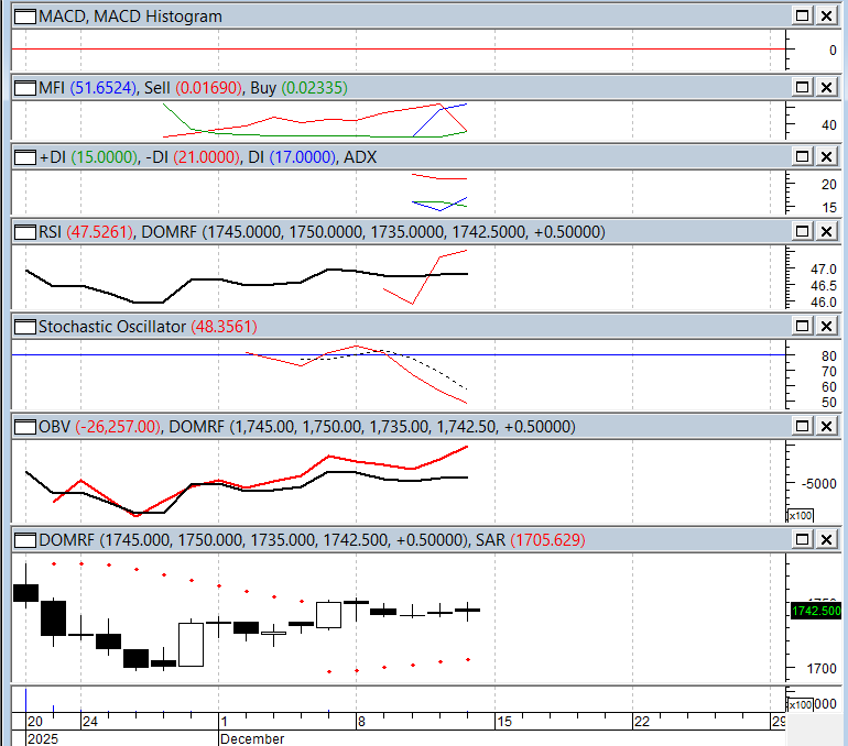 Период день За две недели торгов (+), появились линии (контуры) осцилляторов. Где к месту я добавил линию цены. Теперь я наглядно вижу дивергенцию на рынке... Обращаю внимание График MACD до сих пор остается без "движения". Визуально - MACD ничем не отличается от Stochastic. MACD - более инерционный осциллятор. Меньше шума! Stochastic - более динамичный осциллятор! MACD отслеживает тренд и импульс через пересечение скользящих средних, показывая силу и направление движения цены, в то время как Стохастик (Stochastic) — это осциллятор, запертый в диапазоне 0-100, который сравнивает цену закрытия с ценовым диапазоном за период, сигнализируя о перекупленности/перепроданности и показывая, где цена находится внутри этого диапазона (быстрый, но «шумный»). MACD — для определения тренда, Стохастик — для поиска коррекций и разворотов внутри тренда. *** Акции ДомРФ своевременно появились на российском фондовом рынке! Данные акции как лакмусовая бумага, которая будет (?) отражать состояние россий