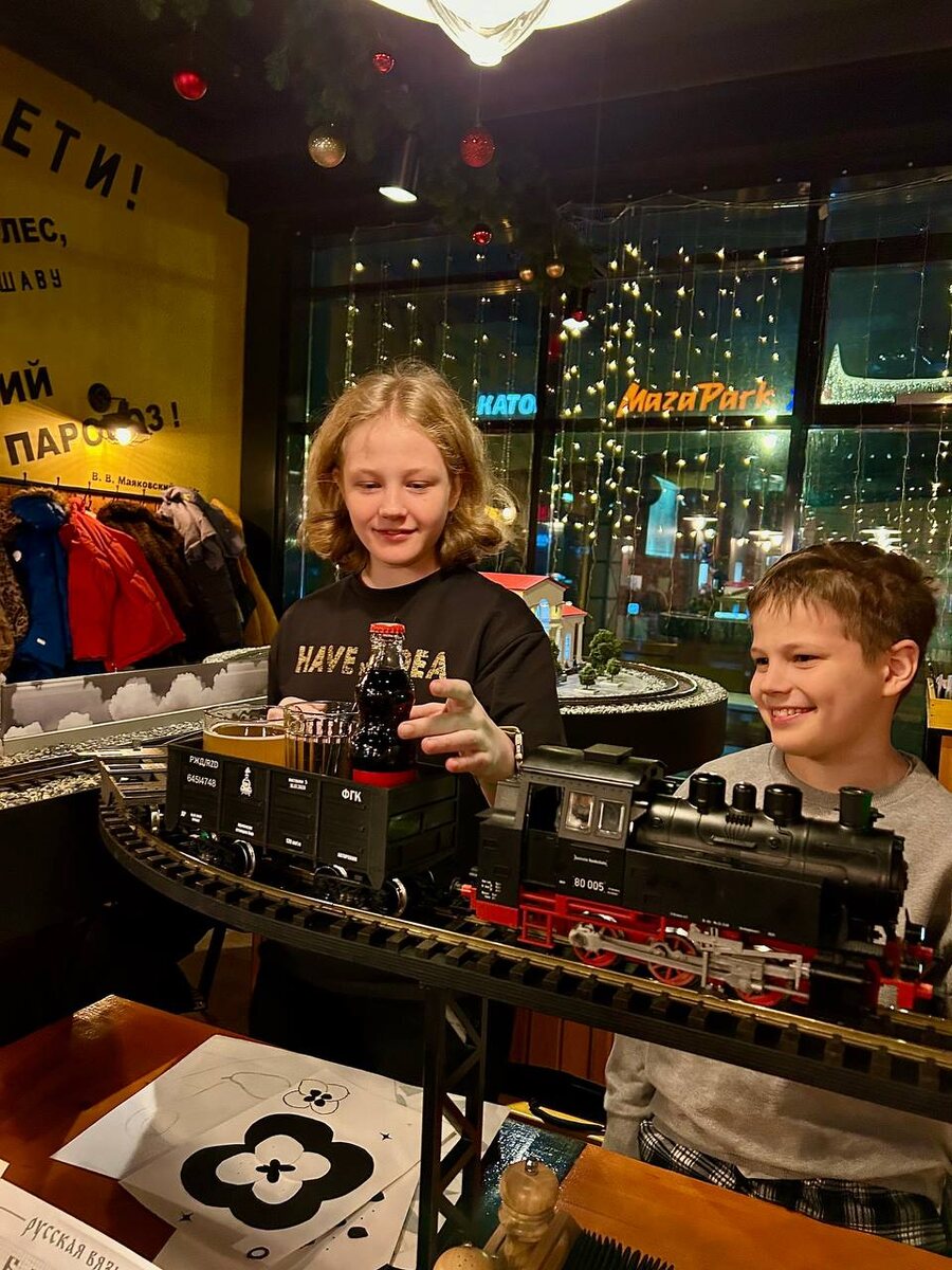 То самое кафе, от которого в восторге все дети 🚂 🗓 Пн-Вс 12:00-22:00 📍 ул. Салова, 61 📍 Малый просп. В.О., 54 к 2 В кафе «Ленинградский Экспресс» ваш заказ подъезжает к столику на маленьком поезде по железной дороге, которая находится в центре зала. А интерьер немного напоминает зал ожидания на вокзале. Есть детское меню и детская комната. Рекомендуем резервировать столик заранее. Без брони время посещения ограничено 1,5 часами. А вы бывали здесь? Делитесь впечатлениями в комментариях. #локация Подпишись на Куда пойти в Питере с детьми 🇷🇺 Мы в MAX 😄 Мы в VK
