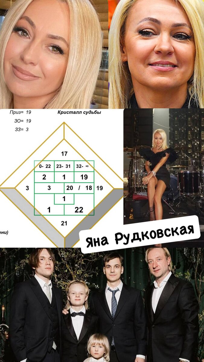 Наша Шакира местного разлива, шОкирующая всех тоннами фотошопа и брендами, но при этом преуспевающая бизнес-вумен, продюссер, жена и мать. Отчего так хорошо, Яночка? Удивительная у Рудковской карта личности: закрытый аркан Верховная жрица, с которого начала свой путь маленькая Яна, как трансформация из «гадкого утенка» в прекрасную «царевну Лебедь». Детство, как правило, наполнено творчеством и общением. Многие приобщаются к музыке, литературе, спорту. Часто, чтобы они не поддались искушениям собственных побед, им дают травмы, личные потрясения или бедность, чтобы они выбрали путь наставничества. В юности они много усилий затрачивают на карьеру, становясь лучшими в своей области специалистами. Их задача не просто передать знания, а научить думать и применять их во благо. В зрелости многие становятся знаменитыми тренерами и наставниками. Никто не мог представить, что этот ребенка достигнет таких высот, возможно, оттого, что душа ее находится на финише своих земных испытаний, опыт эт