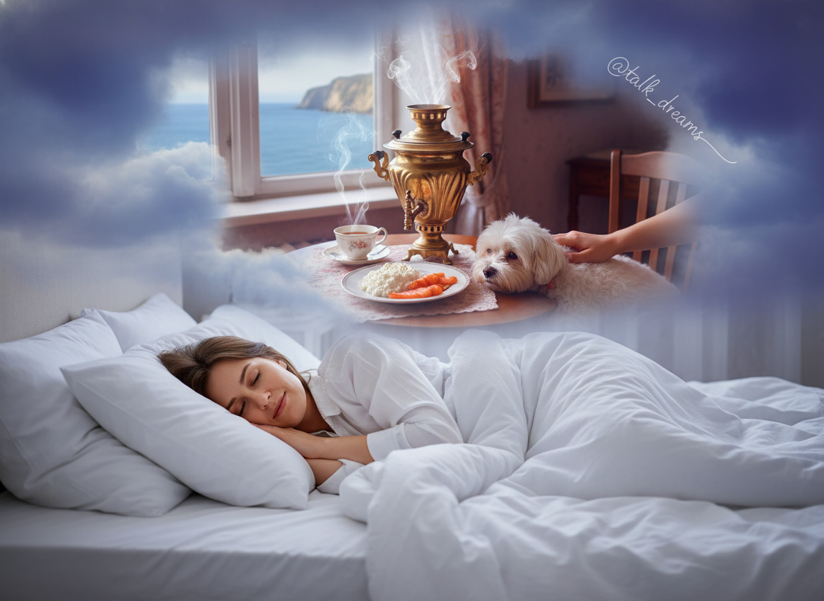 😴 К чему снится старая квартира и завтрак? Елена Черемушкина описывает свой сон так: Я нахожусь у двоюродной сестры в её старой квартире. Она приготовила завтрак: творог и соленую форель, которые кажутся мне несовместимыми. Мы пьем чай из самовара, который парит над столом, и вода в нём очень чистая. Я думаю, почему дома мы не используем самовар. Вокруг вьется белая собачонка, она меня кусает, но без боли. Сестра, умершая много лет назад, просит посидеть с ребенком, но я хочу на море. 🤔 Что же значит этот сон? Кстати, вы тоже можете прислать свой сон для трактования нашему боту в телеграмм – https://t.me/ReceiverDream_bot В данном сне есть несколько ключевых символов: – 🍽️ Завтрак и несовместимые продукты: Еда во сне символизирует духовное насыщение или его недостаток. Несовместимые продукты, такие как творог и соленая форель, могут указывать на внутренний конфликт, связанный с противоположными ощущениями или ценностями. Они также могут отражать дисгармонию в духовной сфере. – ☕ Сам
