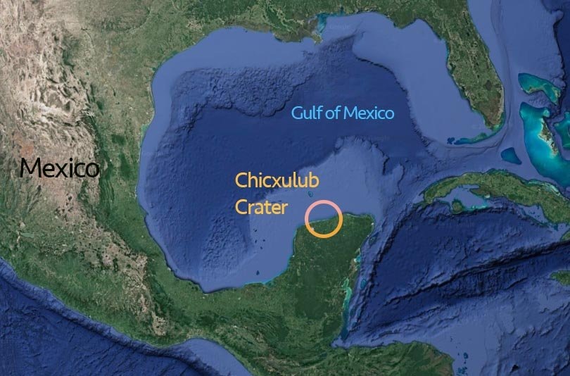 Последняя научная гипотеза связывает вымирание динозавров с падением крупного астероида (около 10 км в диаметре) на территорию современного Мексиканского залива (кратер Чиксулуб – назван по названию рядом расположенного города).
