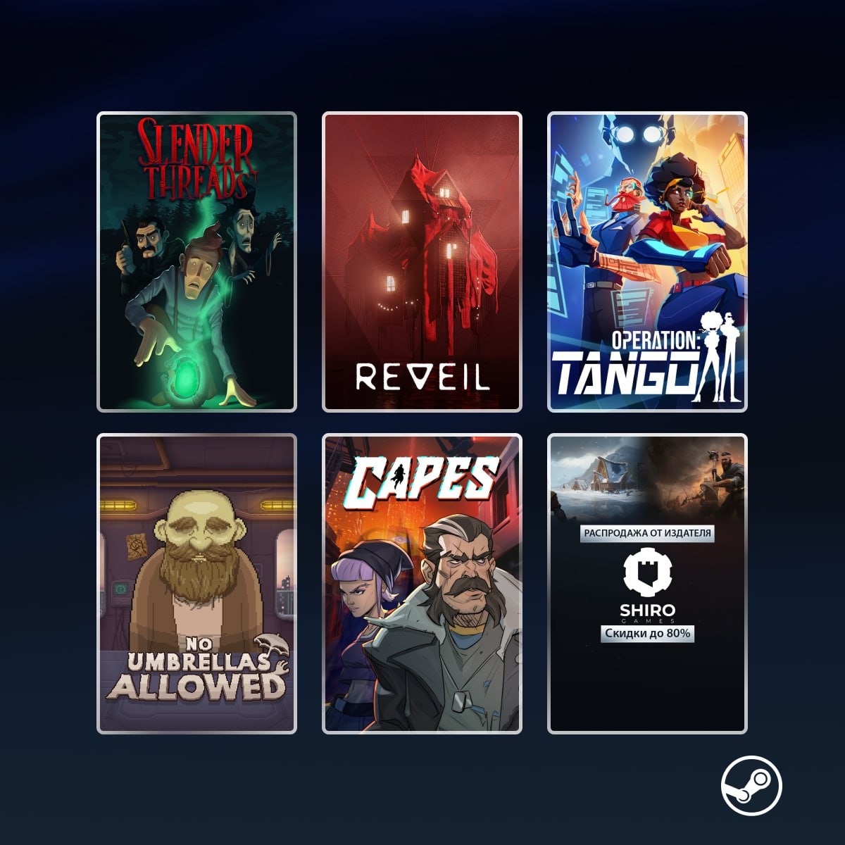 В Steam📱 стартовали ежедневные скидки Slender Threads — 355 ₽, 207 ₴, 2 600 ₸, 5.24 $ 92% из 444 обзоров положительные. REVEIL — 399 ₽, 179 ₴, 2 080 ₸, 3.99 $ 87% из 629 обзоров положительные. Operation: Tango — 141 ₴, 1 768 ₸, 3.56 $ 87% из 6 659 обзоров положительные. No Umbrellas Allowed — 217 ₽, 139 ₴, 1 325 ₸, 5.24 $ 81% из 1 296 обзоров положительные. Capes — 800 ₽, 316 ₴, 3 960 ₸, 7.99 $ 68% из 409 обзоров положительные. ✉️ИГРОВОЙ ДОЗОР✉️ ⭐️КУПИТЬ КЛЮЧИК⭐️