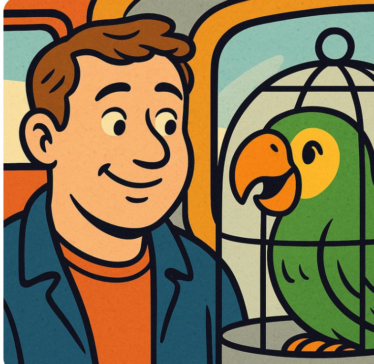 Я долго думал, что меня уже ничем не удивить. Люди в пижамах в метро? Было. Мужчина, разговаривающий с пакетом? Видел. Женщина, которая ест селёдку с луком в час пик? К сожалению, тоже. Но однажды общественный транспорт напомнил мне: человек, ты слишком рано расслабился. Утро было обычное. Серое, слегка злое, с настроением «не разговаривайте со мной, я ещё не человек». Маршрутка была набита людьми, которые молча ненавидят друг друга за то, что все мы здесь оказались. Я сел у окна, включил режим «автопилот» и мысленно пообещал себе: — Просто доехать. Без приключений. Пожалуйста. Вселенная усмехнулась. На одной из остановок дверь открылась, и в салон зашёл мужчина. Вроде бы ничего особенного: лет пятьдесят, серьёзное лицо, аккуратное пальто. И клетка. В клетке сидел попугай. Не декоративный. Не милый. А такой… уверенный в себе. Маршрутка замерла. Это было то самое коллективное молчание, когда все сразу думают одно и то же: Ну всё. Началось. Попугай осмотрел салон, прищурился и громко