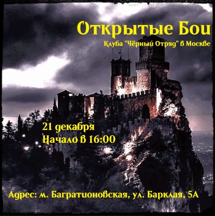 Манёвры - Открытые Бои Клуба "Чёрный Отряд" Дата проведения: 21 декабря 2025 г., в 16:00 Место проведения: Москва, м. Багратионовская, ул. Барклая, 5А В программе: Открытые СМБ и ЛАРП бои Ждем всех, кто хочет: • Отработать командные взаимодействия • Проверить свою тактику и выносливость Правила боёв - https://vk.com/topic-233756512_54731445 Как добраться - https://vk.com/topic-233756512_54731452 Организатор - https://vk.com/wootman_not_afraid Более подробную информацию можно найти на странице мероприятия: https://vk.com/black_company_field Полный календарь мероприятий можно посмотреть тут: donjon.ru/events/ Если вы организатор и хотите, чтоб мы рассказали о вашем мероприятии, пишите нам на shop@donjon.ru #Donjon #Манёвры