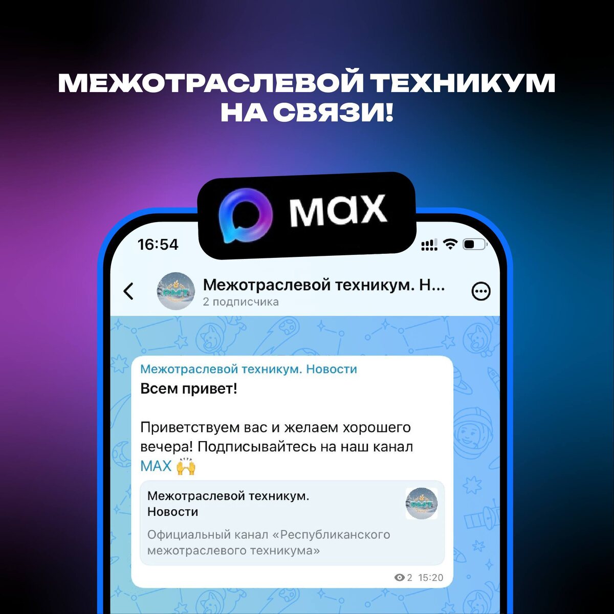 📲 Всё самое интересное теперь в национальном мессенджере MAX Скорее подписывайтесь на канал техникума, чтобы не пропустить эксклюзивный контент: max.ru/id306007349_gos 👈