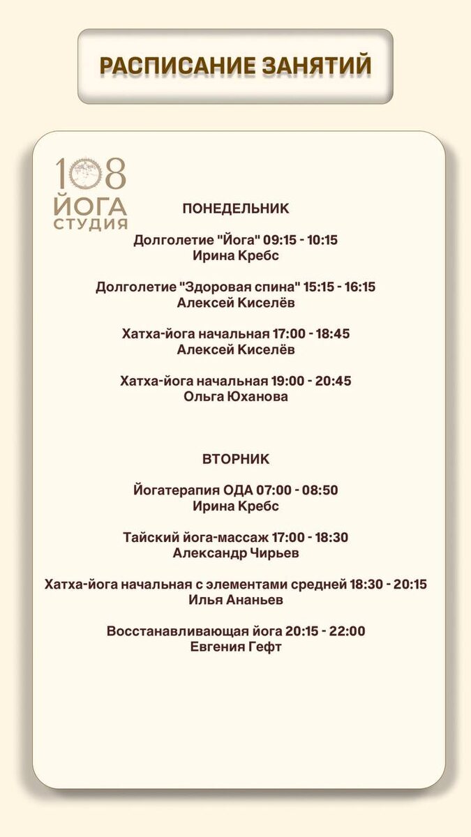 РАСПИСАНИЕ 15 ДЕКАБРЯ - 21 ДЕКАБРЯ Приветствуем, друзья👌 🌙 Запись на занятия, как всегда на нашем сайте. Мы ждем каждого практикующего очно и онлайн на любимых практиках и желаем успехов в йоге🙏 ОМ ШАНТИ ШАНТИ ШАНТИ✨