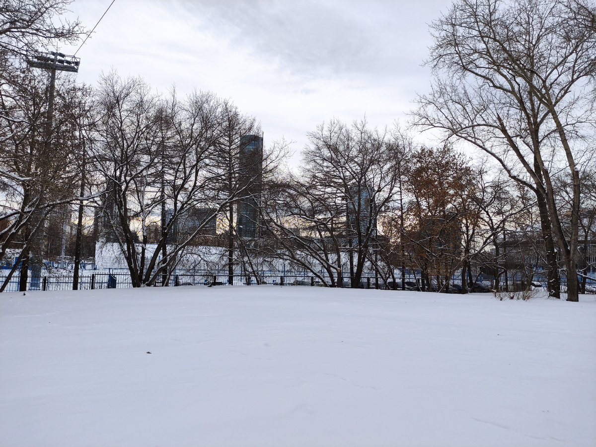 Ура! На Урал наконец-то пришла настоящая зима. Белый снежок покрыл землю и уже, кажется, таять не собирается. Капризы погоды В этом году осень нагрянула рано — чуть ли не в середине лета — и задержалась надолго: почти до середины декабря. Зима пыталась войти в свои права, сыпала снегом, но тот тут же сдавался перед натиском плюсовых температур. Начало декабря 2025 г. Улицы превращались в чудовищное месиво! Причём эти качели повторялись примерно каждые три дня: выпал снег, подморозило, растаяло... Природа просто сошла с ума! Начало декабря 2025 г. Белым снегом... И вот наконец-то, к середине декабря снега навалило столько, что город преобразился. Вот таким заснеженным теперь выглядит Дендрологический сад в самом центре города. Струи фонтана замерли в ожидании вечерней подсветки. Предновогоднее настроение включилось! Город расцветился яркими огоньками. Витрины магазинов и входы в кафе и рестораны оделись в новогодние «костюмы». Чувствуете? Праздник уже на пороге! Ещё