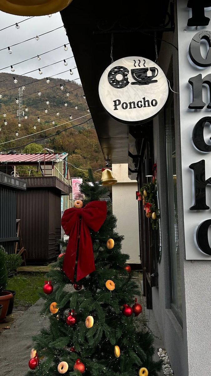 История про чебуреки и стильный бизнес в Гаграх. Поделюсь с вами одним неожиданным открытием, которое посетило меня вчера под шум гагрского дождя. Мы с дочкой приехала в Абхазию на выходные. Хозяйка квартиры, очаровательная Лиана, не только встретила нас на вокзале, но пригласила в свое кафе, с гордостью сказав: «Попробуете самые вкусные чебуреки в Гаграх!». Честно говоря, я ожидала увидеть простой ларёк. Но действительность превзошла все ожидания. Кафе «Пончо» встретило меня совершенно иначе. С порога я ощутила ту самую магию внимания к деталям. На чашечках - изящные новогодние салфетки, столовые приборы с зимними узорами, а на небольшой ёлке вместо игрушек висели… игрушечные пончики. Это было так трогательно и нестандартно. Ливень разбушевался не на шутку, и мы переместились в уютный шатёр, где стояла печь. Сидеть там в тепле, наблюдая за потоками воды, и чувствовать аромат свежего кофе по -восточному - это был момент абсолютного счастья. Каждая вещь в этом пространстве, от у