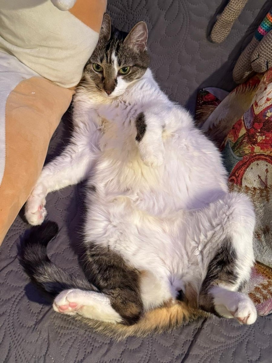 Сарделина))) Наш котомать, котоотЭц))) Кто помнит, раньше Сарделька была той классической очень упитанный кошкой из мультика про попугая, почему, собственно, и получила свое имя) В Мурчашке Сарделька с декабря 2022 года! Уже три года, ребят, эта чудесная кошка у нас!!! Самое дружелюбно, самое эмпатичное, самое большое среди наших котЭ. За эти три года выяснилось, что Сарделька - не она, а он (но для нас Он все равно Она 🙃🙃), за три года Сарделя схуднула до нормальных кошачьих размеров, ей были удалены все зубы (гигнивитостоматит, увы, не даёт иного выхода), Сарделя стала нашей частичкой. Мы искренне недоумеваем, почему Сарделька остаётся незамеченной укотовителями. Умна, добра, компаньонка, друг и - поговорить не против. Дольше Сардельки у нас только Кузя, Кенди и Лоло. Расшарьте, плиз, расскажите о Сардельке всем неокошаченным (и окошаченным тоже, ибо Сарделя всех берет под свое крыло, всем в кайф прижаться к её большому теплому доброму тельцу).