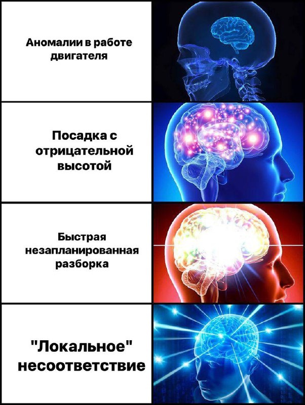 Кстати. Термина "локальное" несоответствие в новости Роскосмоса про отмену пуска я ни разу за все время работы на предприятии не встречал и сотрудники такой термин не используют. Нужно понимать, что во время проверок все специалисты действуют по инструкциям, в которых отражается последовательность действий, команд и в том числе отклик этих команд: загорание индикаторов, вывод данных, параметров. И как раз они либо СООТВЕТСТВУЮТ, либо НЕ СООТВЕТСТВУЮТ. И дальше начинается веселье: если обнаружено несоответствие, то оно заносится записью в журнал регистрации несоответствий по системам и предпринимаются необходимые действия по их устранения. Термин "несоответствие" безэмоционально и полно отражает информацию о том, что "что-то пошло не так". Без слов "проблема", "проблемки", "у нас неполадки". А дальше в причинах надо разбираться. Есть ещё термины аварии, нештатные ситуации, но это уже другая история