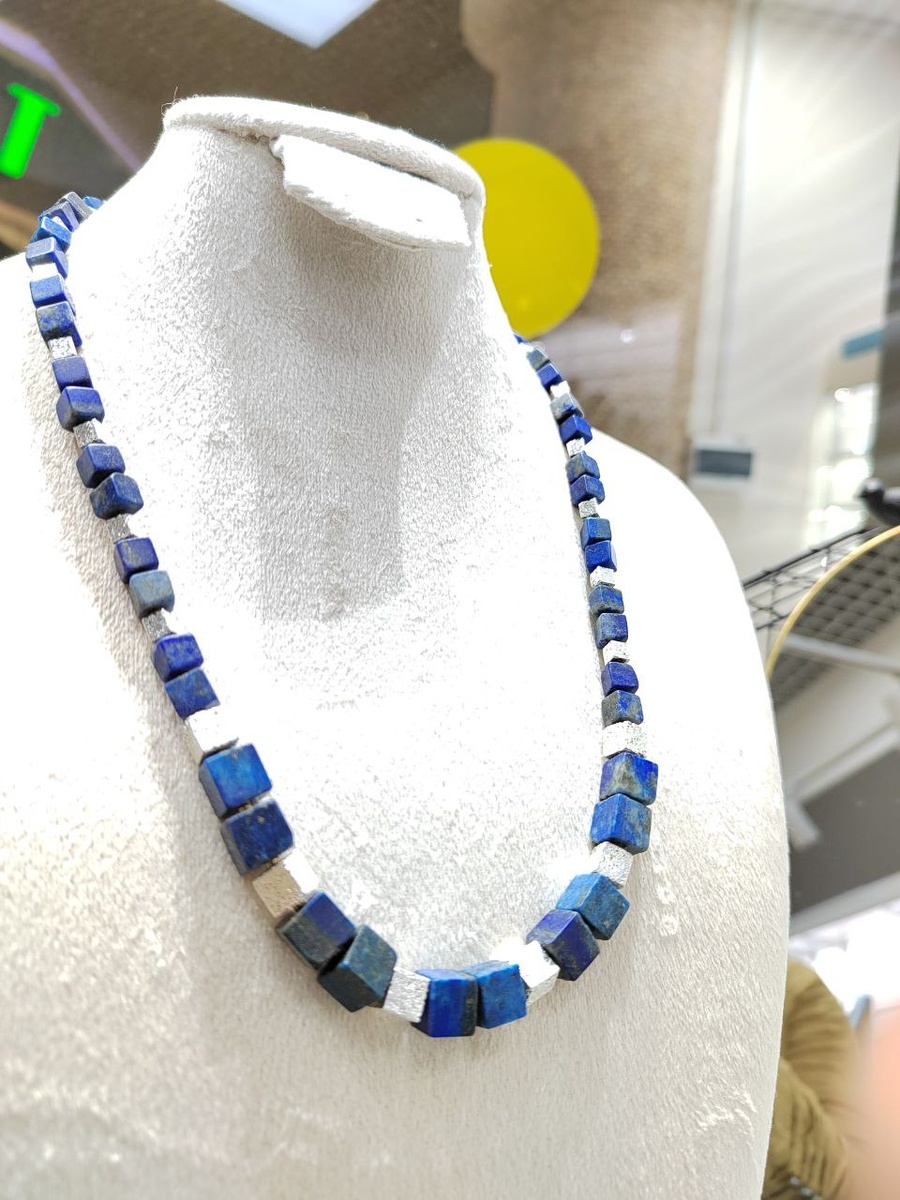 Доброе утро) на улице замечательная погода, и мы ждём вас за Красотой) На фото ожерелье из натурального лазурита с серебристым гематитом лава, бусины в форме кубик разного размера Длина 47 см 🌏 Доставка 🚚 бесплатная от покупки 1500рублей любым удобным вам способом Сделано специально для нашего магазина, ручная работа