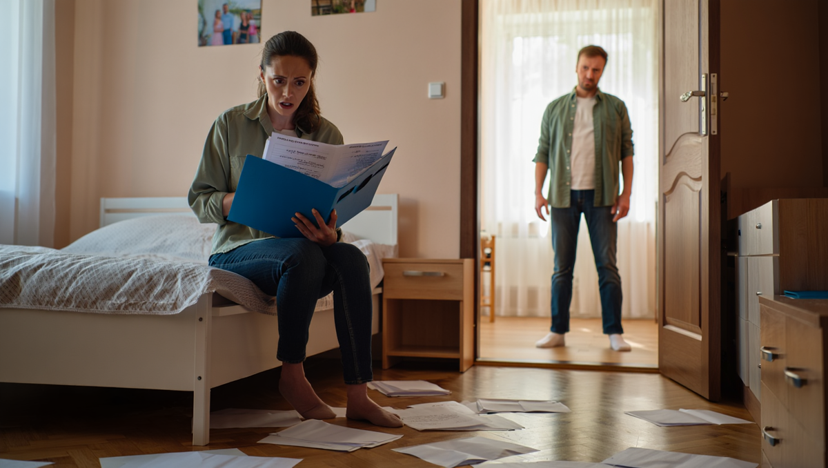 Игорь вошёл в спальню, увидел жену с папкой и остановился.
