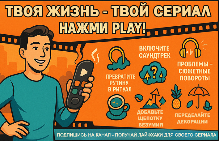 Устали от ощущения, будто живёте в бесконечном «дне сурка»? Пора сменить сценарий! Давайте превратим вашу жизнь из «типичного понедельника» в увлекательный проект с элементами драмы, комедии и приключений. Хватит бродить по улицам, уткнувшись в телефон, словно статист в массовке. Пора заявить о себе! Почему это работает? Мозг любит ассоциации. С правильной музыкой поездка в метро превращается в атмосферный клип, а поход в магазин — в спецоперацию по спасению холодильника. Лайфхак: создайте отдельный плейлист «Моя кинолента» — с треками, от которых мурашки по коже. Обычная жизнь становится эстетичной, когда вы добавляете в неё щепотку осознанности. Секрет: разница между «уныло» и «атмосферно» — в фокусе внимания. Попробуйте — и мир заиграет новыми красками. Когда жизнь подкидывает сюрпризы (не всегда приятные), не стоните «За что мне это?!», а скажите: «О, вот и поворот сюжета!» Вспомните любимые фильмы: без трудностей не бывает развития. Ваш текущий «кризис» — это: Напоминание: даже у