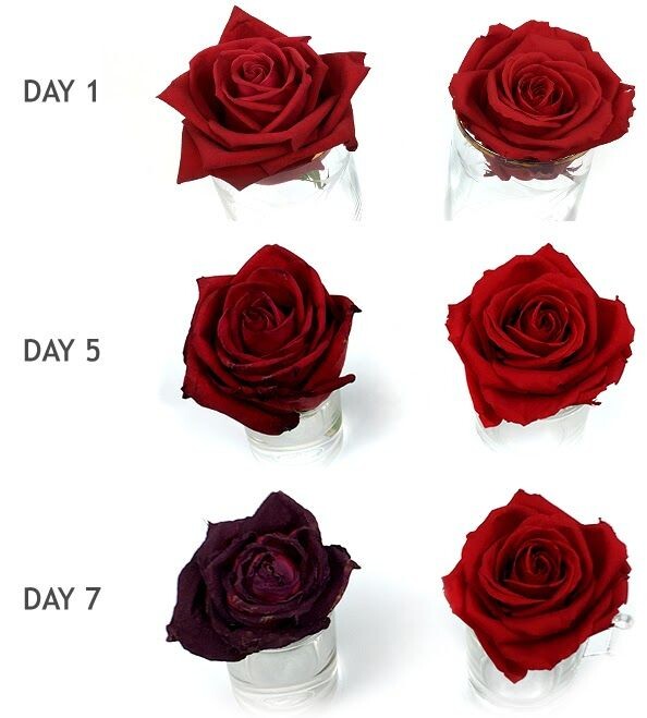 Глицерин замещает внутриклеточную влагу через капиллярную систему стебля (ксилему). ➡️ Если капиллярная проходимость нарушена — стабилизация невозможна, даже при идеальной инструкции. 2. Требования к розам (самый частый источник неудач) Подходят ТОЛЬКО: • свежесрезанные розы первичной гидратации;