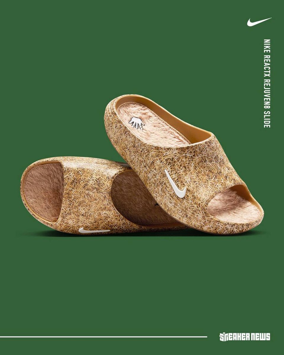 Лол, успокоительные тапочки в которых буквально можно потрогать траву выпустил Nike. Это модель ReactX Rejuven8 Slide за 85 долларов (6,7 тысяч рублей). Дроп намечен на 19 декабря. То что нужно, в конце года 👟