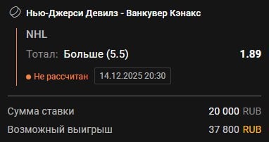 🏒🏒🏒🏒🏒 😈Нью-Джерси - 🐳Ванкувер Для Нью-Джерси это бэк-ту-бэк, а такие игры почти всегда бьют по обороне: меньше свежести, больше ошибок и выше темп в атаке. Ванкувер после обмена своего лучшего игрока Куинна Хьюза показали, что сезон для них закончен и команда уходит в перестройку — давления за результат нет, команда действует раскрепощённо, больше атакует, но при этом регулярно проваливается в защите. Такие матчи часто превращаются в открытый хоккей без оглядки на счёт. В итоге получаем идеальный сценарий для результативной встречи. Прогноз: Тотал больше 5,5