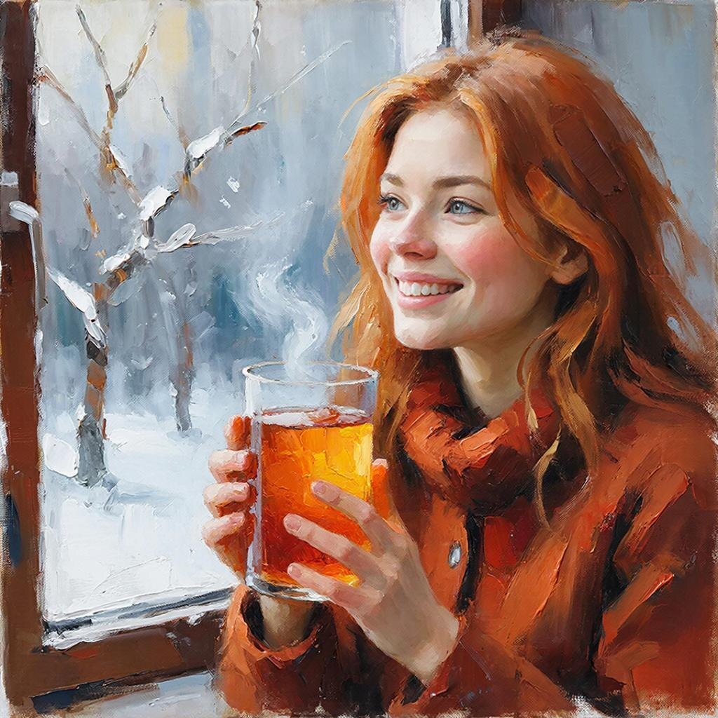 Снег шёл уже третий день без остановки, словно кто-то наверху, устав от суеты и бесконечных забот, решил закутать Город в белоснежное одеяло. Тяжёлые, пушистые хлопья сыпались с неба, как будто кто-то осторожно стряхивал пух с гигантских подушек. Улицы, дома, машины - всё было укрыто мягкой, почти первозданной белизной, словно художник размашисто мазнул кистью по холсту, оставив на нём лишь снег и тишину. Даже рекламные вывески на улице Ленина, обычно яркие и кричащие, теперь выглядели приглушённо, как будто кто-то накрыл их тонким покрывалом из льда и света. Анастасия стояла у окна своей квартиры, прислонившись лбом к холодному стеклу. Её длинные, вьющиеся рыжие волосы, похожие на осеннюю листву, рассыпались по плечам, отливая медью в тусклом свете зимнего дня. Серые глаза блестели - не от слёз, а от едва сдерживаемого восторга. Она была полна энергии, несмотря на то, что за окном температура давно опустилась ниже минус десяти градусов, а тротуары покрылись льдом, словно кто-то нарочн
