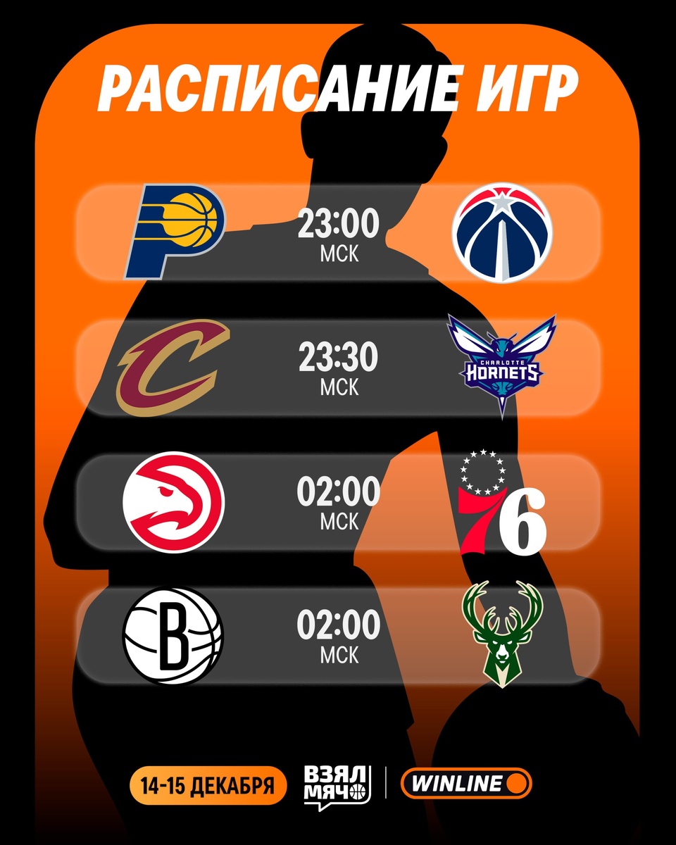 📺 Расписание трансляций сегодняшней длинной игровой ночи! Начинаем с раннего матча. Что будете смотреть? 23:00 | Индиана — Вашингтон 🎙 Иван Латышев 23:30 | Кливленд — Шарлотт 🎙 Матвей Юдкин 02:00 | Атланта — Филадельфия 🎙 Марк Бурчаков 02:00 | Бруклин — Милуоки 🎙 Андрей Протасов 03:00 | Миннесота — Сакраменто 🎙 Георгий Гигинеишвили 03:00 | Чикаго — Новый Орлеан 🎙 Дмитрий Хамидулин 04:00 | Финикс — Лейкерс 🎙 Александр Зотеев 05:00 | Портленд — Голден Стэйт 🎙 Дмитрий Сидоренко Прямые трансляции всех матчей смотрите в нашей группе ВК! 🏀 ПОДПИШИСЬ — ЗДЕСЬ ЖИВЁТ БАСКЕТБОЛ!