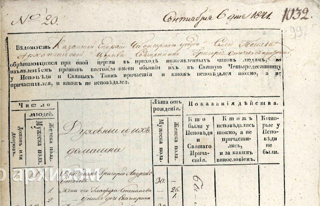 ГИА Чувашской Республики (ГИА ЧР), фонд № 225, опись № 7, дело № 62, стр. 1053 скан. Подана сентября 6 дня 1841 года. Ведомость Казанской Епархии Чебоксарского уезда села Тогаева Архангельской церкви священника Григория Оточева с причтом, обретающимся при оной церкви в приходе нижеявленных чинов людям, со изъявлением против коегождо имени о бытии их в Святую Четыредесятницу у Исповеди и Святых Таин причастия и кто ж исповедался токмо, а не причастился, и кто ж не исповедался. Духовные и их домашние. № 2. Дьячек Михаил Андреев Тогаев. 32 лет. Жена его Екатерина Семенова. 29. Дети их: Марья. 7. Николай. 4. Иоанн. ½. https://yandex.ru/archive/catalog/df0c2f69-0a9c-4047-82d4-d3181c176cdf/1053