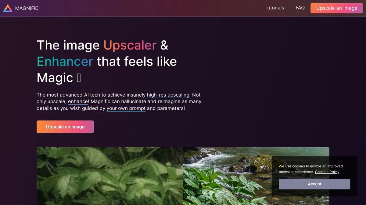 Freepik С февраля 2025 Magnific доступен напрямую в Freepik. Цены те же (90 кредитов за 2K, 270 за 4K), но удобнее для пользователей Freepik.