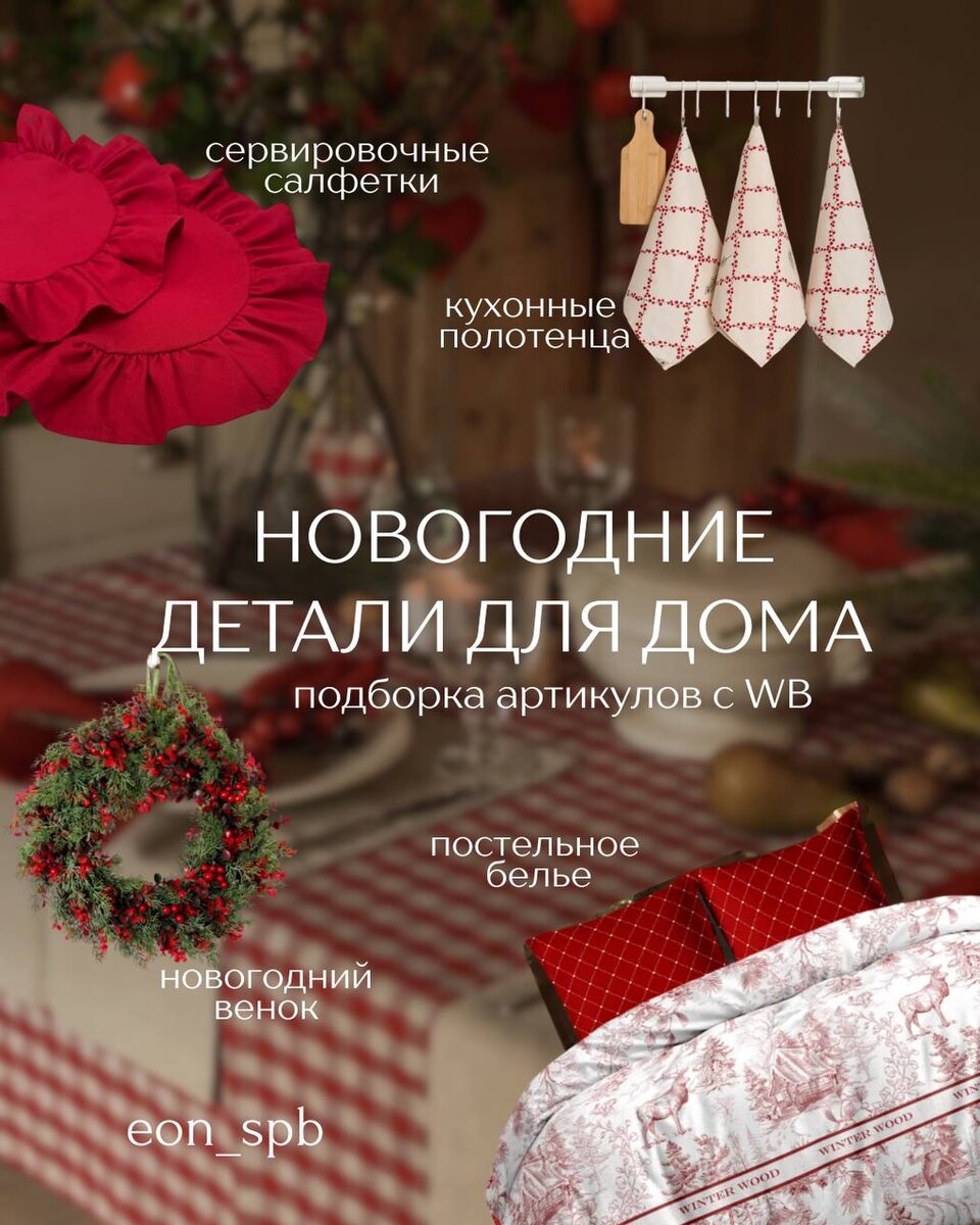 Как у вас с новогодним настроением?🎄 ➡️ Мы решили поделиться с вами маленькими новогодними детальками для дома, чтобы создать уют и поднять настроение! Вот артикулы наших находок🔽 🔵сервировочные салфетки арт.wb 294106634 🔵набор новогодних полотенец арт.wb 525017678 🔵новогодний венок арт.wb 182398976 🔵новогоднее постельное белье арт.wb 104321069 📎А какие праздничные детали уже сохранили вы? Делитесь своими находками в комментариях – давайте вместе создавать атмосферу праздника❄️