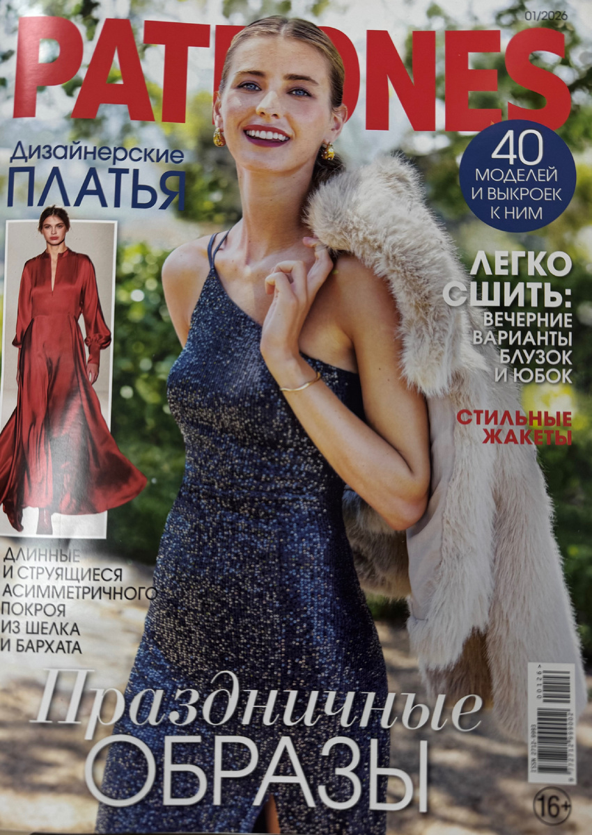 Кажется, Новый год официально можно считать открытым: вышел Patrones 1/2026 - праздничный номер, который хочется листать с карандашом в руках и ворчать «шить мне, конечно, некогда, но выкройку сохраню». Технические рисунки: Все модели можно изучить по техрисункам. А начну с самого ожидаемого - с подиумных моделей. Подиум: чёрный вечер без шанса на скромность В подиумной подборке четыре чёрных платья, и это прям чистый вечер, без оговорок. Здесь глубокое декольте, открытые плечи, высокие разрезы. Днём такие модели живут с трудом. Но! Если немного скорректировать выкройку: поднять линию выреза, уменьшить высоту разреза, получаются уже не "красная дорожка в Каннах", а очень достойные платья для мероприятий, где не хочется выглядеть слишком откровенной. Серое кожаное платье: мой фаворит номера Серое платье из кожи мне прям зашло. Актуальный фасон: объём в плечах, крой «летучая мышь», мягкая линия по фигуре с подчеркнутой талией. Такой вариант как раз про современную классику: и не ску