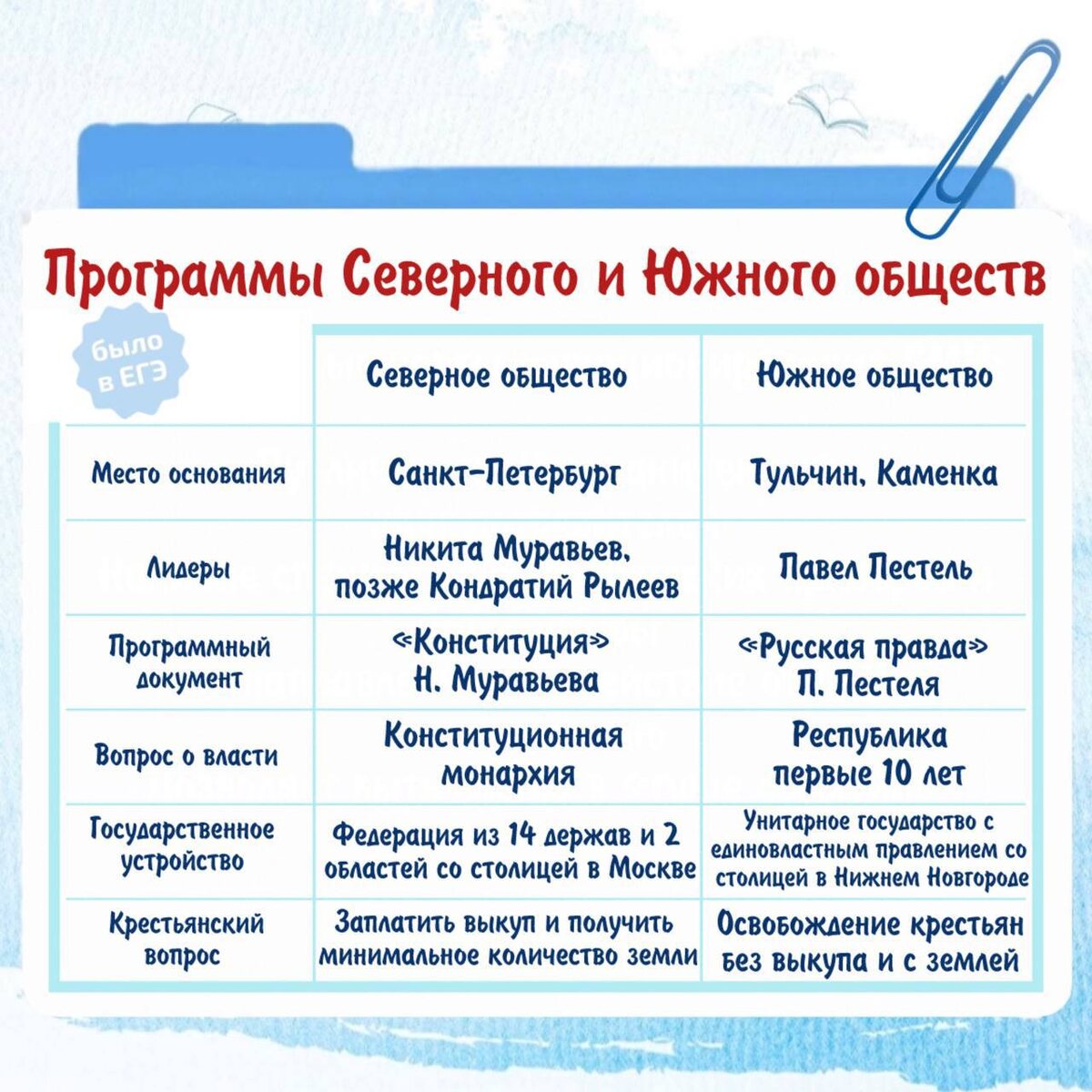 📣📣📣 Сравнение программ Северного и Южного обществ может встретиться в КИМах! #полезноеистория