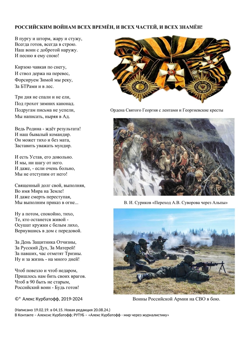 РОССИЙСКИМ ВОЙНАМ ВСЕХ ВРЕМЕН, И ВСЕХ ЧАСТЕЙ, И ВСЕХ ЗНАМЁН!