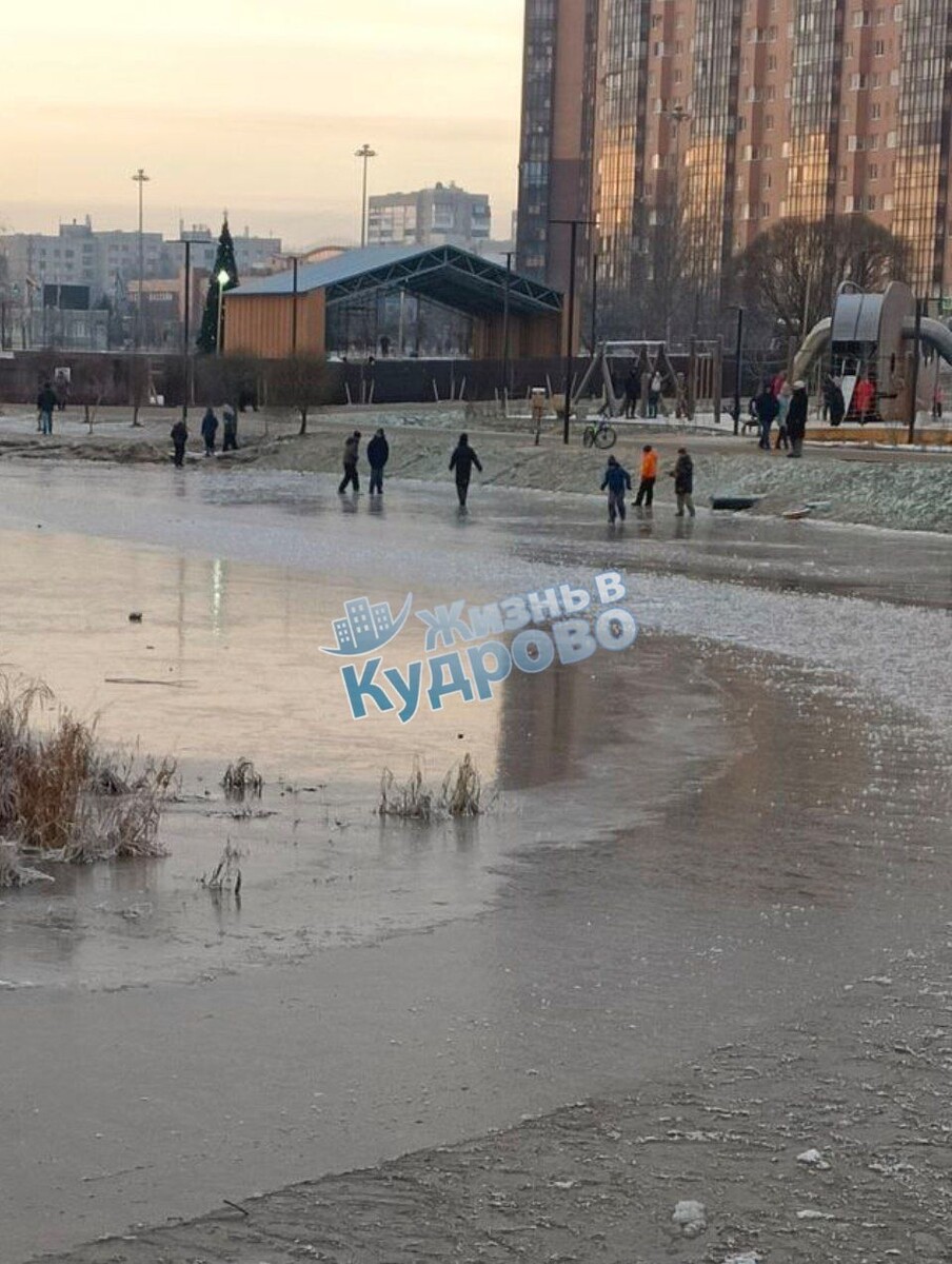 Кудровская молодёжь уже начала проверку тонкости льда 🧊 👀