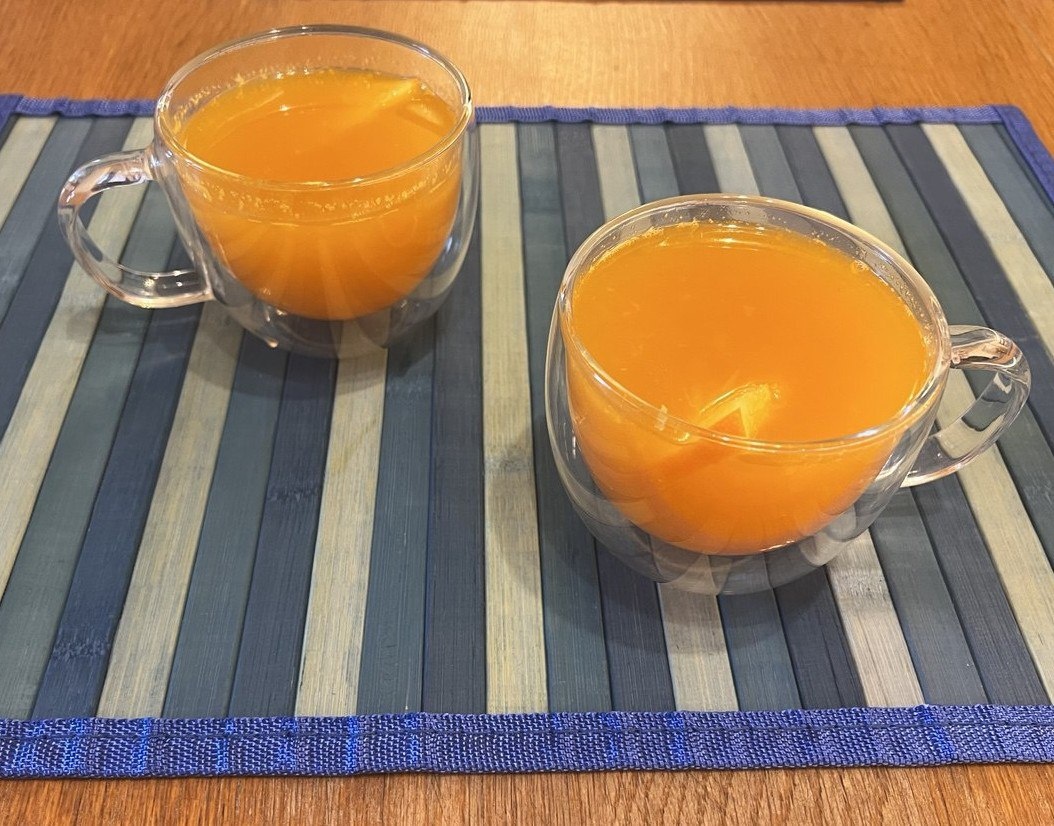 ! После мороза так хочется горяченького. Давайте заварим облепиховый «чай». Нам понадобится: Апельсин — 1/2 большого или 1 маленький и, разумеется, облепиха. Возьмём замороженную — примерно 100 грамм на 1 литр воды. Для сладости — пару десертных ложек мёда. Если хочется более согревающий вариант, можно добавить натёртый свежий имбирь. Ягоды разморозить, положить в металлическое сито и размять ложкой или деревянной толкушкой, чтобы сок стёк в чашку. Так мы сбережём больше витаминов. Апельсин (тщательно помытый) нарезать тонкими дольками вместе с кожурой. Размятую облепиху и апельсин кладём в небольшую кастрюльку, заливаем горячей кипячёной водой — примерно 95 градусов. Ставим на медленный огонь, настаиваем минут пять, до кипения не доводим. Разводим мёд тёплой водой в отдельной посуде, затем снимаем напиток с огня и выливаем туда воду с мёдом и облепиховый сок. Перемешиваем, процеживаем в чашки. Напиток готов. Получается яркий, золотистый напиток, вкусный и солнечный. Напомин