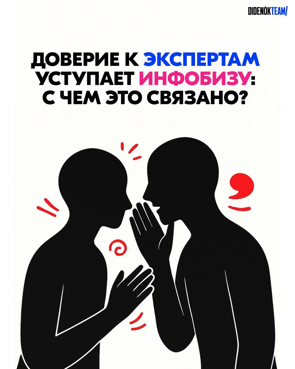 Исследования институтов и мнения экспертов с профильным образованием постепенно уходят на второй план. На их место приходят блогеры, продающие информацию в соцсетях. Пользователи все больше и больше доверяют их мнению из-за нескольких факторов: 🔹ощущения близости; 🔹личного опыта; 🔹понятного tone of voice. Срабатывает эффект сходства, из-за которого людям становятся все равно на образование и специальность инфобизнесмена. Максимум, на что они могут обратить внимание — кейсы. Вспомним 🔹до/после🔹, который так и манит купить курс. Инфобизнес работает на вовлечение и стремится продать эмоцию, в отличие от профильных экспертов, которые опираются на данные и факты 🤔 Так инфобиз стал заметной частью образовательной среды. По данным Инк, в России авторские инфопродукты занимают 15-25% всего EdTech-рынка, а его объём оценивается до 40 млрд рублей в год. Экспертиза никуда не исчезла, но теперь она конкурирует не с другими знаниями, а с человеческими чувствами, идентификацией и ощущение