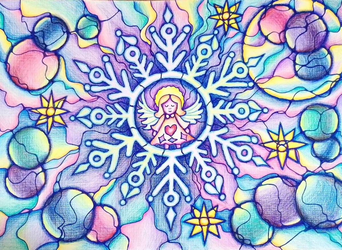 Новогодний марафон "Нейро-Чудеса", инструктор Людмила Коструб, порисовать бесплатно: Рисунок Натальи Ивановой: "Вторая моя снежинка