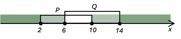 На числовой прямой даны два отрезка: P = [2; 10] и Q = [6; 14]. Укажите наименьшую возможную длину такого