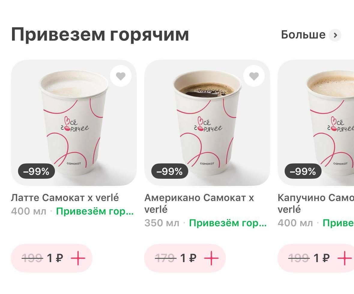 Кофе за рубль стал доступен некоторым пользователям Самоката. Обычно он стоит под две сотни.