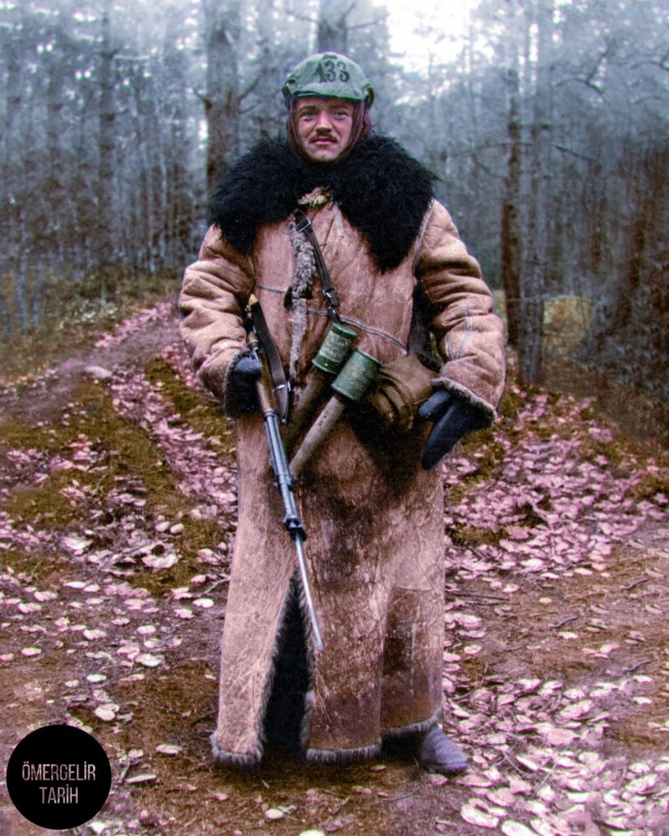 Немецкий солдат ландвера Карл Генрих Шёнерт в зимней одежде на Восточном фронте, 31 декабря 1915 года. Он погиб в бою 27 июня 1916 года. Колоризация от omergelirtarih.