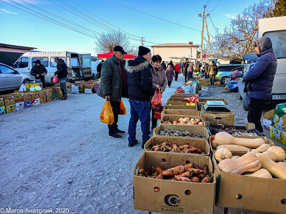 Вчера, в воскресенье, случился первый морозный день в Старом Крыму. В 8 утра термометр в саду показывал -6, значит, ночью было ещё холоднее. Ещё бы снег и тогда была бы настоящая зима. Я, как всегда, с утра отправился на рынок. Но надолго там не задержался. Купил курицу, яблок, а также морковь и свеклу для винегрета, и сразу домой. Отвык уже в Крыму от холодов.