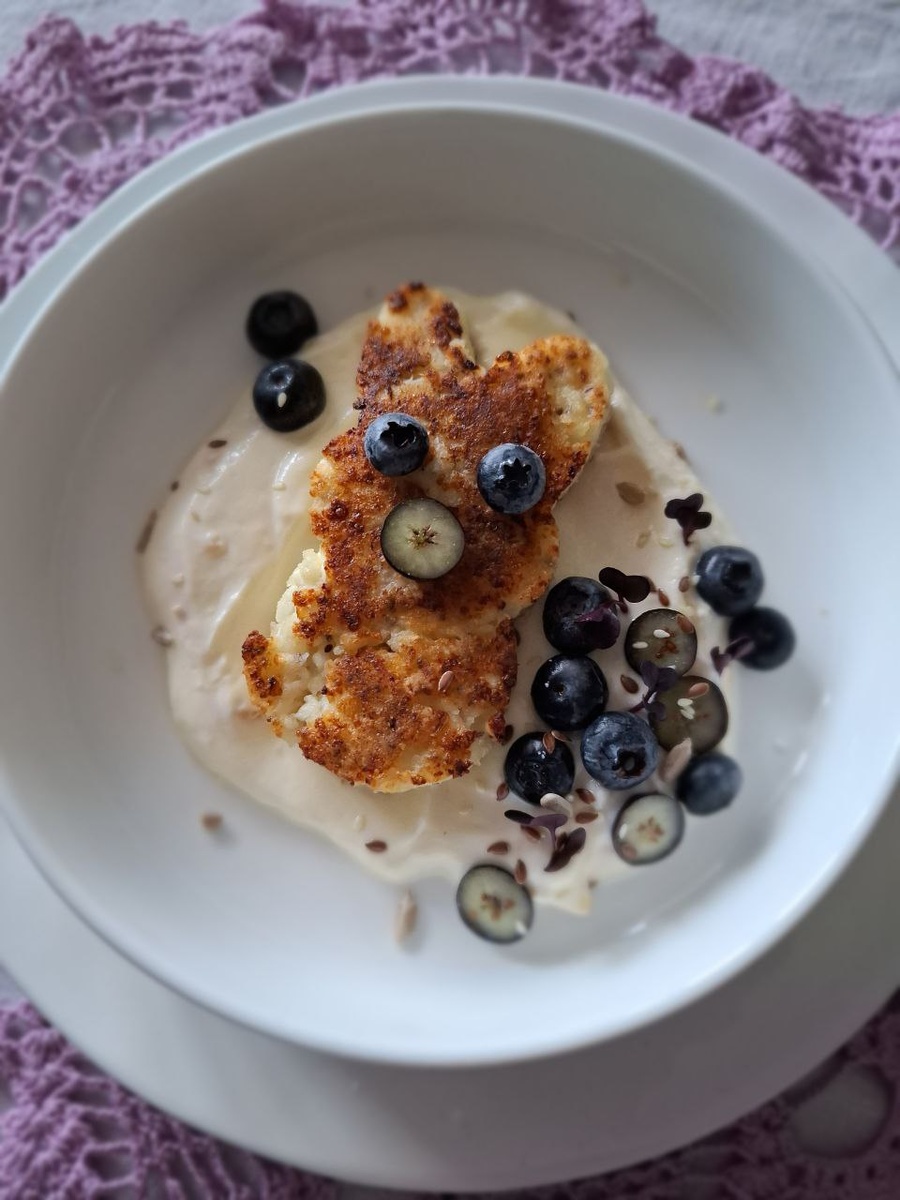 Творожные зверушки: завтрак как театральное представление Завтрак способен подарить целый спектр эмоций — достаточно лишь немного фантазии и желания удивлять близких. Представьте себе утро, когда обычные блюда превращаются в настоящих персонажей увлекательного представления, которое разыгрывается прямо на вашем столе! Сырники-жители волшебного леса Возьмите обычный творог, добавьте пару яиц и щедрую ложку рисовой муки. Из получившегося теста слепите забавных зверушек: зайчиков с длинными ушками, мишек с пушистыми лапками, птичек с крохотными крылышками... Не бойтесь экспериментировать! Чтобы придать персонажам еще больше очарования, воспользуйтесь ягодами — пусть они станут яркими глазками и весёлыми улыбочками ваших творожных друзей. Йогуртовый фон сцены На тарелке создайте живописную картину, приготовив нежнейшую подушку из натурального йогурта. Пусть она станет уютным полем, покрытым травинками-проростками свеклы, на которых расположатся ваши вкуснейшие герои-зверята. Семена-чар