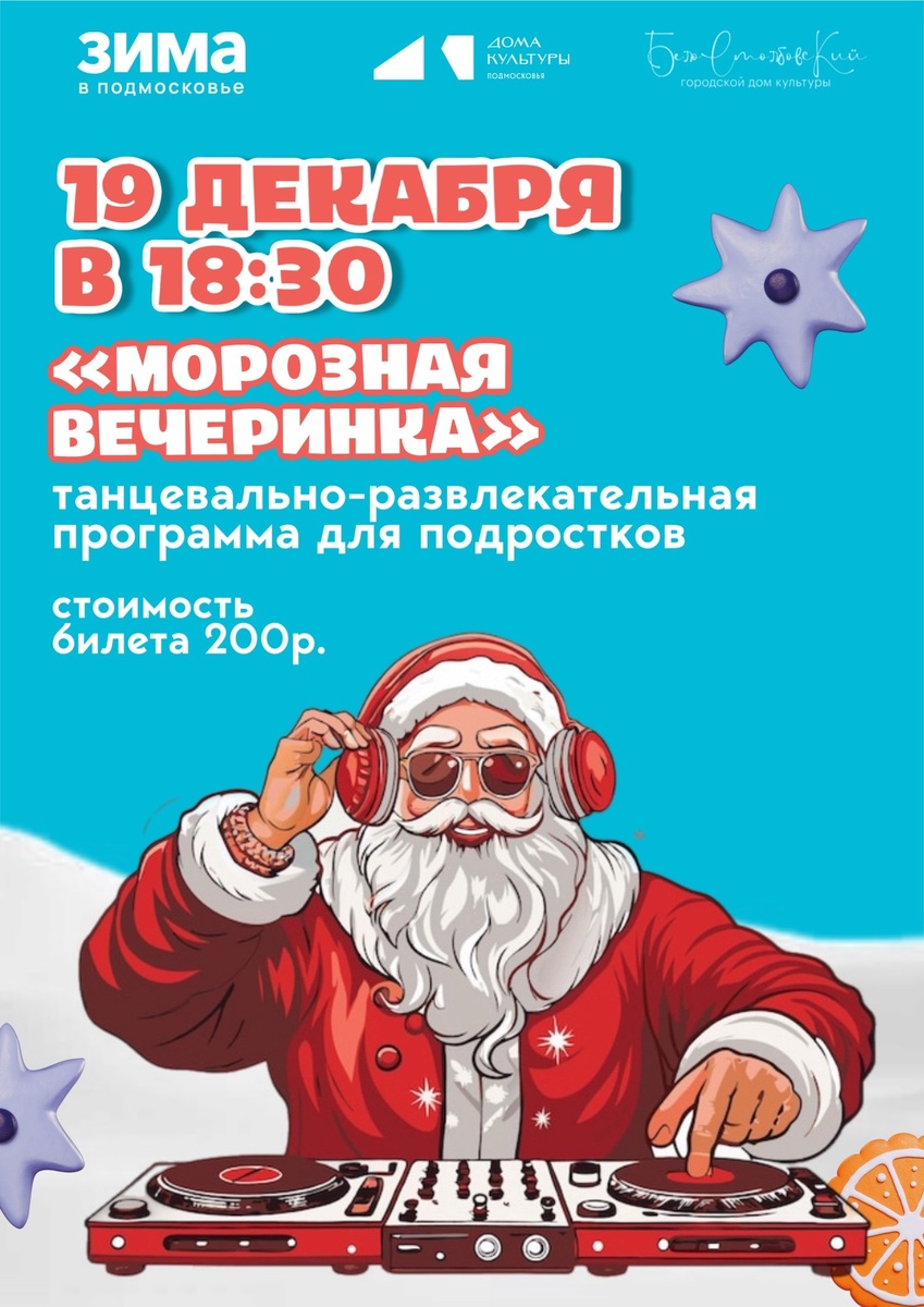 ✨ ❄️ «Морозная вечеринка» ждёт вас! ❄️ Хотите зарядиться позитивом перед новогодними праздниками? Приглашаем подростков на танцевально-развлекательную программу «Морозная вечеринка»! 🎉 Не упустите шанс отлично провести время, потанцевать и повеселиться с друзьями! Собирайте компанию и приходите — будет жарко, несмотря на мороз! ❄️🔥 Ждём вас! До встречи на «Морозной вечеринке»! 🪄 📆 19.12.2025🕒18:30 🏢 Белостолбовский городской Дом культуры (ГДК) 📍 г.о.Домодедово, мкрн.Белые Cтолбы, ул. Авенариуса стр. 1а 💰 Цена: 200 ₽ ✅ Мероприятия Домодедово https://dzen.ru/id/66f10385cc4c5a16f7b5fb02 http://vk.com/domodedovo_events http://dzen.ru/domodedovo_events