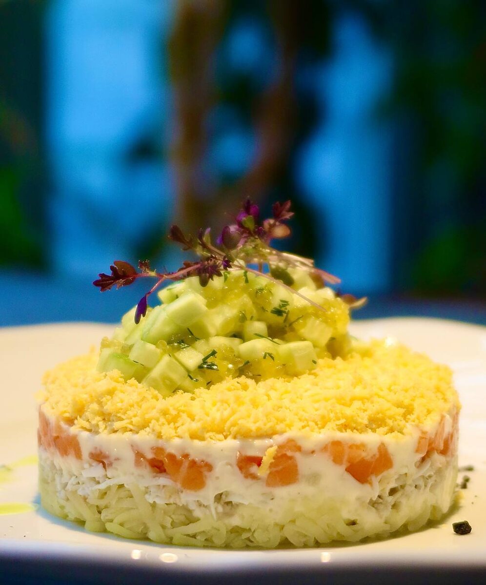 Рекомендуем попробовать 🌿🎄 Салат Мимоза с копченым картофелем и тар-таром из форели — нежная слоеная структура салата с фирменным почерком Буратино - копченым вкусом💫 Олицетворение зимы, праздника и уюта — уже в меню❄️ #буратино #buratino