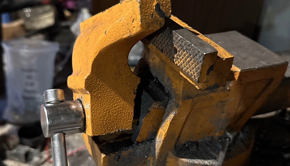 Привет всем, дорогие друзья. В моей мастерской есть большие и маленькие тиски, которыми я часто пользуюсь, чтобы шлифануть деталь или отрезать ее. Но большие тиски быстро сломались, но покупать новые совсем не хотелось, тем более когда было интересно заварить их самому, опыт лишним точно не будет. Вот такие большие тиски сломались, причем увидел это только как пришел в гараж на следующее утро, то есть трещина произошла из-за напряжения в металле. Такой масштаб поломки, тиски чугунные и это будет первый мой опыт в сварке чугуна, но уже забегая вперед могу сказать, что все прошло удачно. Первым делом при помощи сварочного аппарата тиг я сделал прихватки, чтобы ровно выставить сломанную часть. После чего при помощи бормашины вырезал часть чугуна, чтобы шов был как можно крепче, а не только на поверхности деталей. Отлично помогла фреза с круглым профилем, канавка получается широкой и глубокой одновременно, то что надо. Сам процесс сварки я не снимал, неудобно это делать, так как на ка