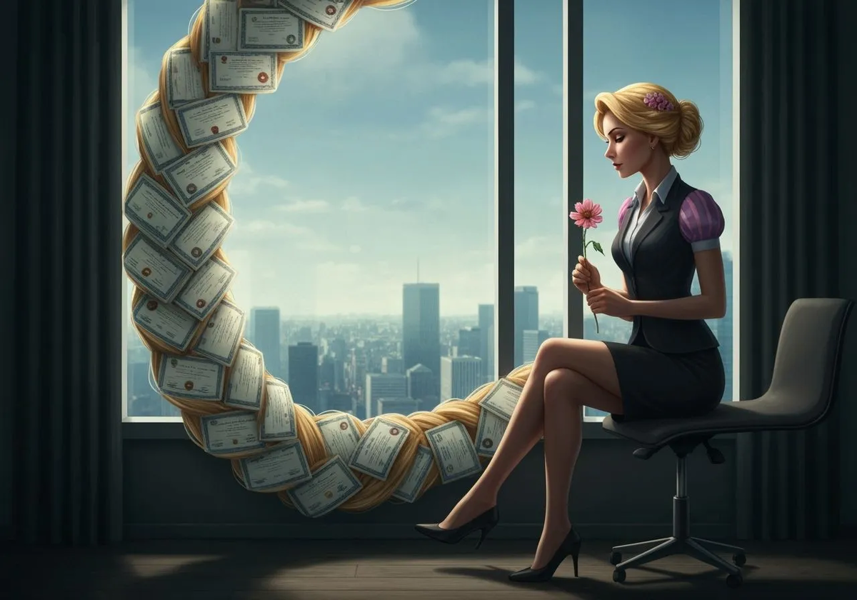 Цветочек надежды, что принц-рекрутер заберет в крупную международную компанию Сидеть в высокой башне своего резюме. Плести косу достижений. Опускать ее вниз в мир. Ждать, когда по ней заберутся. Ждать. Поливать цветочек. Коса желтеет, цветочек вянет. А крупная компания оказывается стартапом Если вы пассивно ждете «своего принца» (инвестора, клиента, оффер) — вы уже в башне. Пора собрать косу и построить из нее лестницу.