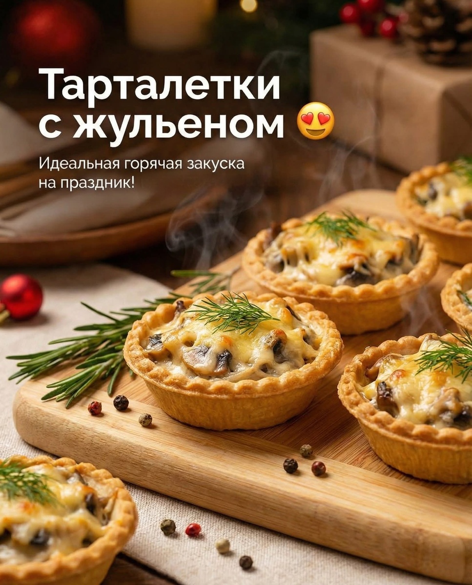 Если нужно блюдо, которое выглядит эффектно, готовится быстро и исчезает первым, — это точно тарталетки с жульеном.