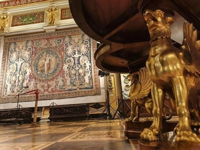 πΠ ΠΡΠΌΠΈΡΠ°ΠΆΠ΅ Π²ΠΎΡΡΡΠ°Π½ΠΎΠ²ΠΈΠ»ΠΈ 450-Π»Π΅ΡΠ½ΡΡ ΠΊΠΎΡΠΎΠ»Π΅Π²ΡΠΊΡΡ ΡΠΏΠ°Π»Π΅ΡΡ Β«ΠΠΏΠΎΠ»Π»ΠΎΠ½ ΠΈ Π·Π½Π°ΠΊΠΈ Π·ΠΎΠ΄ΠΈΠ°ΠΊΠ°Β» πΠΡΠ°Π½Π΄ΠΈΠΎΠ·Π½ΠΎΠ΅ ΠΏΠΎΠ»ΠΎΡΠ½ΠΎ ΠΏΠ»ΠΎΡΠ°Π΄ΡΡ 24 ΠΊΠ²Π°Π΄ΡΠ°ΡΠ½ΡΡ