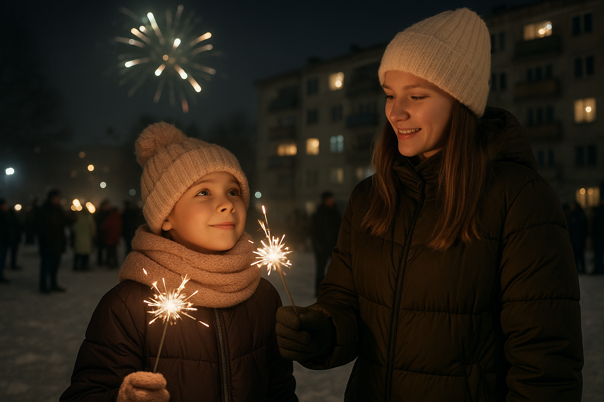 И рядом — девочка, для которой главный фейерверк этой ночи был сам факт: год, в котором всё ломалось, наконец‑то закончился.