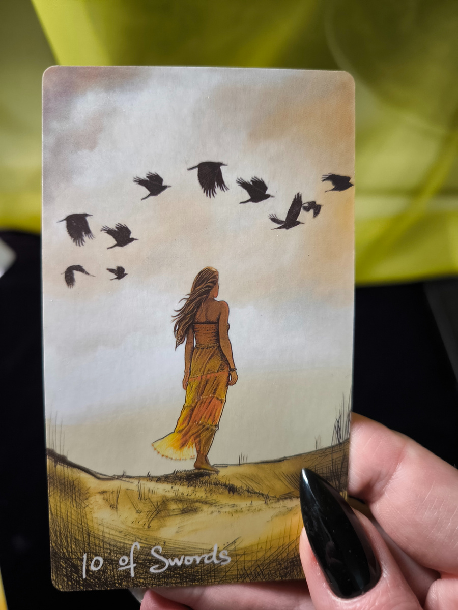 Сегодняшний день проходит под влиянием **Десятки Мечей**, аркана крайней точки, эмоционального истощения и завершения тяжёлого этапа. Это карта, которая говорит не о борьбе, а о моменте, когда силы уже исчерпаны и дальше продолжать прежним способом невозможно. Приветствую вас на моем канале "Отливки воском. Руны. Таро"! Меня зовут Татьяна, я практикующий маг с 20-летним опытом. В своей практике я использую отливки воском, руны, таро. Провожу диагностики и чистки, снятие наведенного и родового негатива, крадников и приворотов. Использую светлую магию, работаю с богами Северной Традиции, веду обучение рунами и отливкам воском. На этом канале я делюсь своим опытом магической работы, своими магическими знаниями, а также интересными случаями из своей практики. Присоединяйтесь ко мне в увлекательном путешествии по загадочному миру мистики и магии! На карте изображена молодая женщина, уходящая от края обрыва. Она не бежит и не падает, а спокойно и осознанно делает шаги в противоположную с