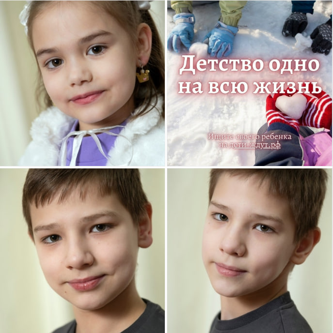 Братья-близнецы Арсений и Серафим и их младшая сестра Лиза — настоящая маленькая семья. Ребята дружны между собой и очень нуждаются в мудрых и ответственных родителях. Знакомьтесь! Лизе 10 лет. Очаровательная, жизнерадостная и нежная девочка. Излучает обаяние, красоту и естественность. Внешне Лиза напоминает Дюймовочку из сказки: она такая же маленькая, милая и добрая. Но за этой нежной оболочкой скрывается сильный характер: Лиза четко понимает поставленные задачи и уверенно справляется с ними, даже когда сталкивается с трудностями. Воспитанная и вежливая, легко находит общий язык как с детьми, так и со взрослыми. Аккуратна и трудолюбива, с удовольствием поддерживает порядок. Мечтает стать воспитателем в детском учреждении, видит в этом своё призвание. 🌸 Анкета Лизы по ссылке Арсений и Серафим - братья-близнецы. Им 13 лет. Арсений — общительный, смелый, активный, добрый и ласковый мальчик. Легко находит общий язык с другими детьми, часто становится инициатором игр, проявляет лидер