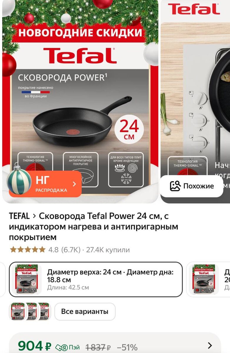 Сковорода Tefal Power 24 см, с индикатором нагрева и антипригарным покрытием https://market.yandex.ru/cc/8FRM3o ✅ Канал по скидкам 🔣 Бот с промокодами