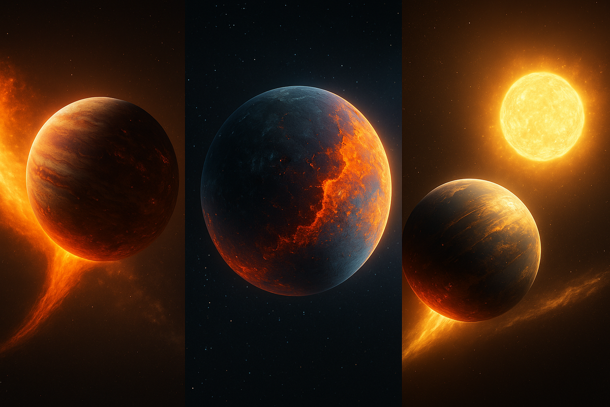 Ещё тридцать лет назад существование планет за пределами Солнечной системы было лишь гипотезой. Сегодня астрономы подтвердили более 5 000 экзопланет, и многие из них оказались настолько необычными, что не имеют аналогов рядом с Землёй. Эти миры не выдумка и не художественные образы — их существование подтверждено спектральным анализом, транзитными наблюдениями и гравитационными измерениями. Ниже — планеты, которые считаются самыми странными с точки зрения современной науки. WASP-12b — планета, которую «съедает» её звезда WASP-12b — так называемый горячий юпитер, расположенный на расстоянии около 1 400 световых лет от Земли. Он вращается настолько близко к своей звезде, что полный оборот совершает менее чем за 26 часов. Температура на его дневной стороне превышает 2 500 °C. При таких условиях атмосфера планеты расширяется и буквально утекает в космос, формируя гигантский газовый шлейф. Наблюдения показывают, что звезда постепенно «испаряет» планету. Это один из редких случаев, когда ас