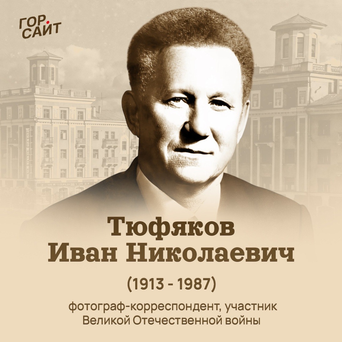 #Мемориальные_доски_Полевского Тюфяков Иван Николаевич (1913 - 1987) - Уральский фотожурналист Иван Тюфяков родился в 1913 году в д.Ярушонки Орловского уезда Коврижской волости. (В настоящее время это территория Тохтинского поселения Кировской области). В 1931 году Иван окончил единую трудовую школу второй ступени № 1. Семнадцатилетним юношей приехал в город Свердловск. Через биржу труда устроился учеником в фотолабораторию редакции газеты «Уральский рабочий». Вскоре ему стали поручать несложные задания по фоторепортажу. Через несколько лет фотоаппарат пришлось сменить на миномет. В ноябре 1941 года Иван Тюфяков был отправлен на фронт. Командовал взводом, а позднее ротой, участвовал в обороне Сталинграда, с боями дошел до Правобережной Украины. В январе 1944 года жесточайшие бои шли за реку Северный Донец, а так же за правобережную Украину. Бойцы минометной роты при грамотном руководстве своего командира Ивана Тюфякова сражались так отчаянно и храбро, что помогло их батальону успе
